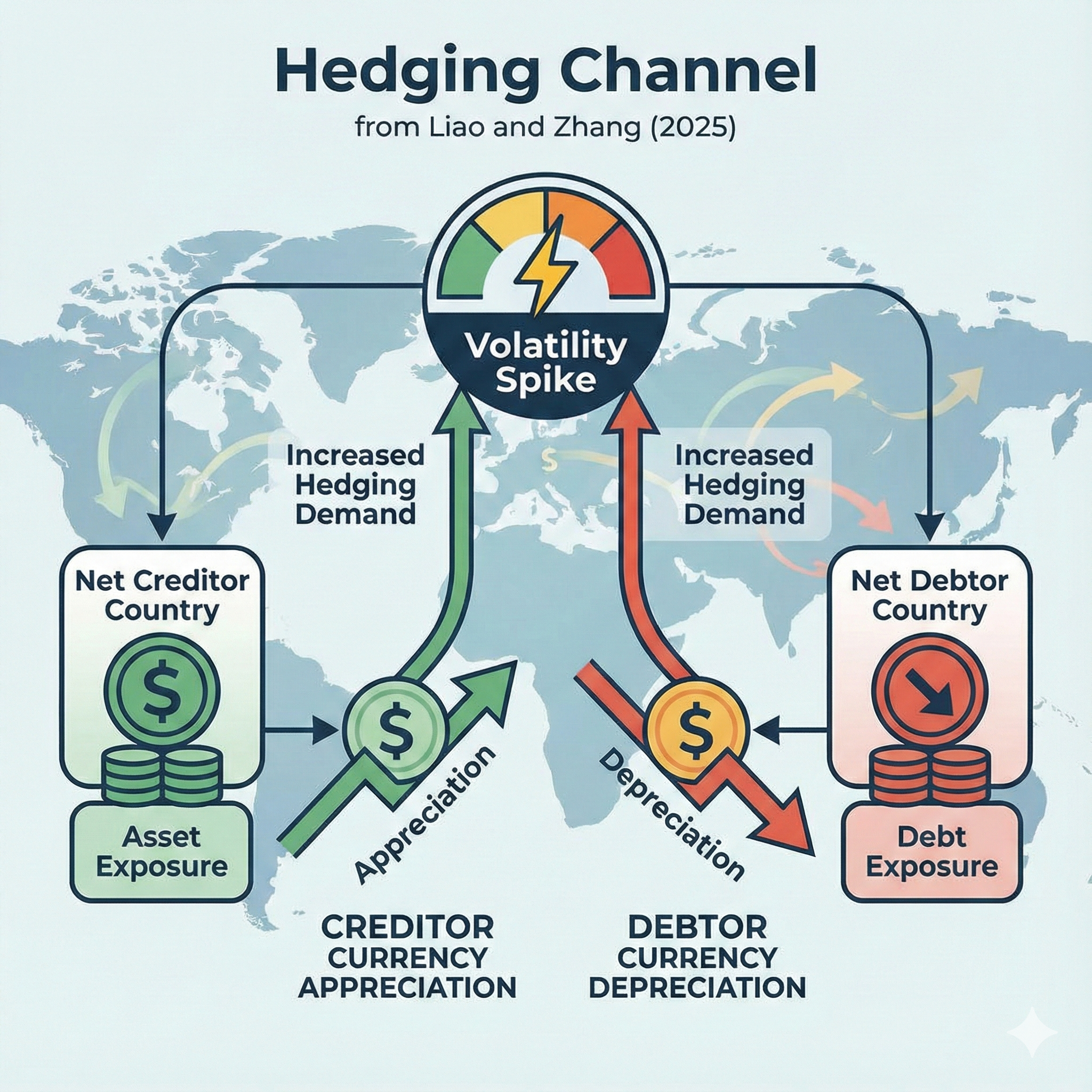 - Basically $$\uparrow \text{Financial Distress} \Rightarrow \uparrow \text{Currency Hedging} \quad \text{in proportion to NFA or Country Imbalance}$$
